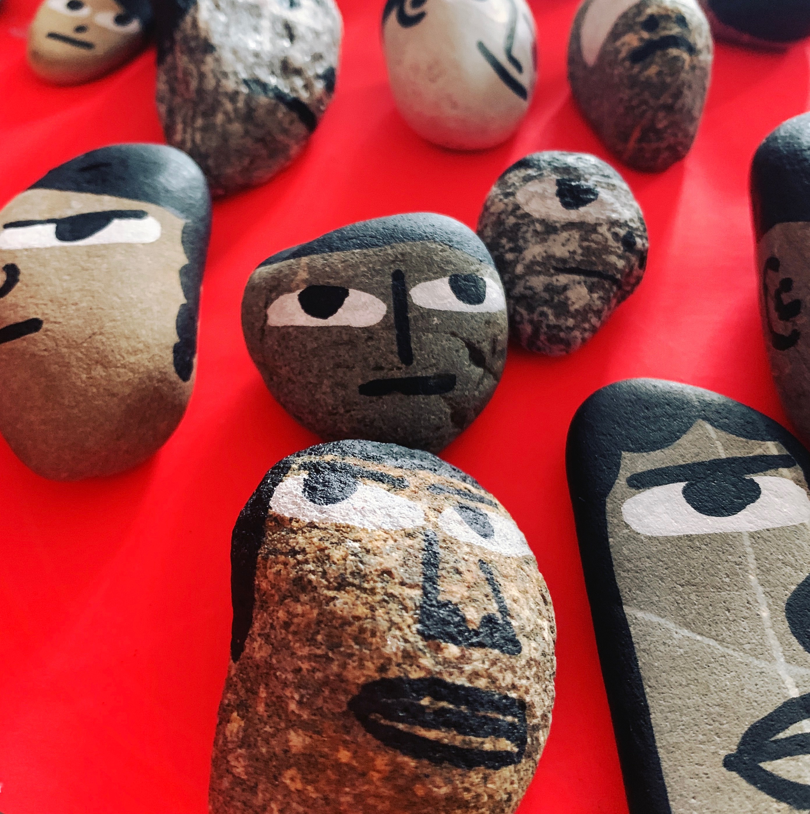 Mi hanno chiesto di dare un tocco di “bellezza” e ho deciso di fare questi sassi perché ogni volto ha la sua particolarità,