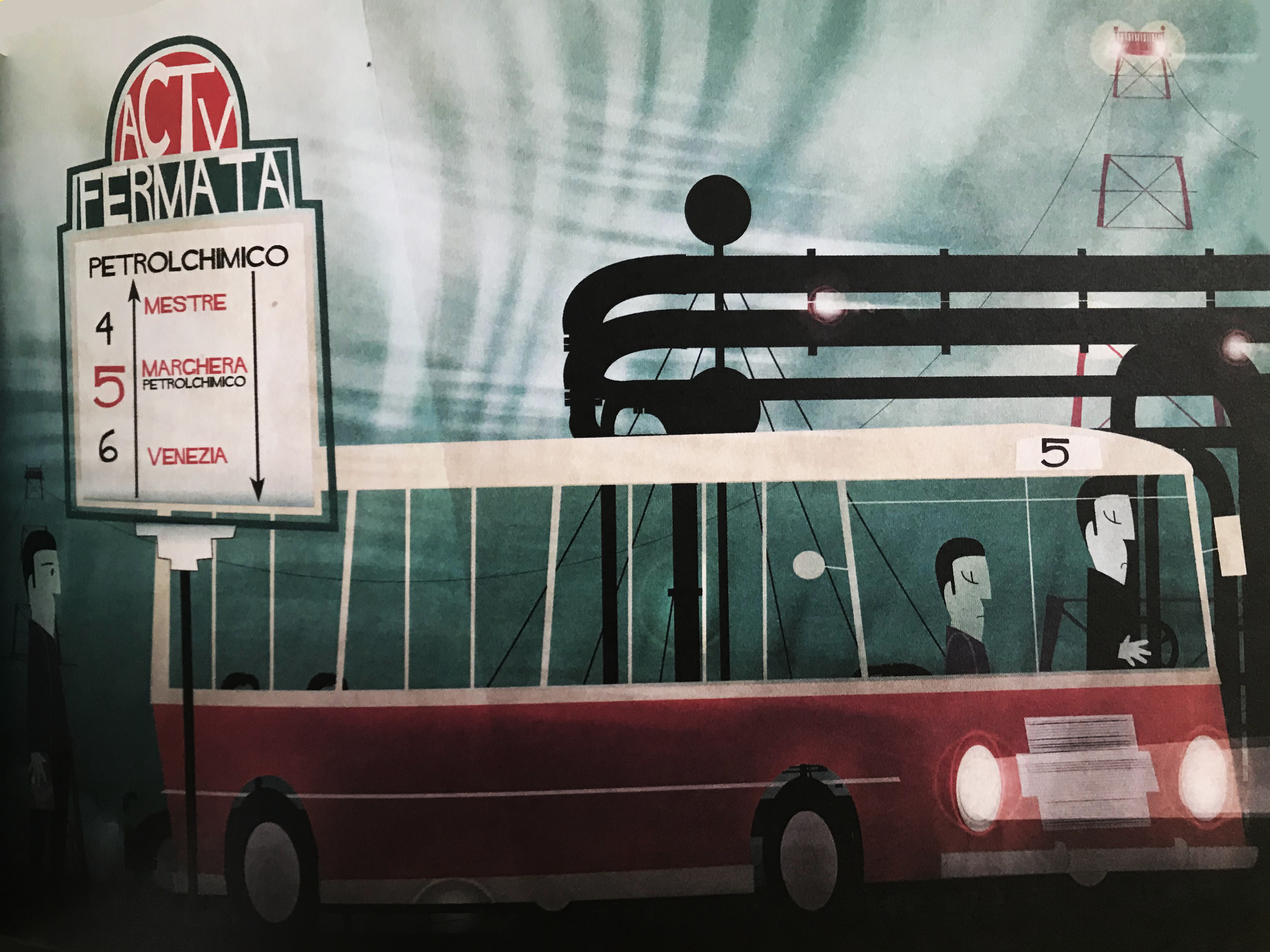 El mostro è un lavoro che negli anni ho declinato in vari progetti. Prima di essere un libro e un cortometraggio è stato anzitutto un’occasione per guardarmi dentro e capire chi sono. Questa è la storia di Gabriele Bortolozzo, eroe contemporaneo, eroe il cui nemico-mostro sono i veleni della produzione industriale tenuti nascosti dal Petrolchimico di Marghera, dici minuti in macchina da Venezia, venti minuti in bici. Questa è la storia delle domande che Bortolozzo ha cominciato a porsi negli anni, divenute poi pericolose certezze e subito dopo corpi senza vita di operai innocenti (e inconsapevoli). Queste domane sono qui rievocate con la liricità toccante di un’animazione ma con il concreto valore informativo di una reportage
