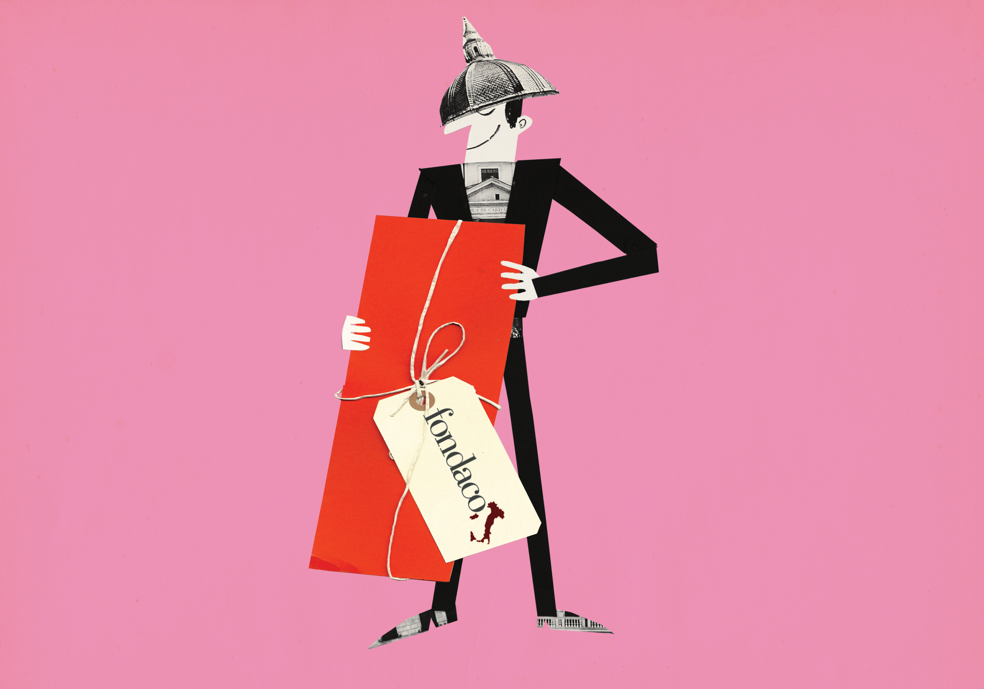 La Richiesta del Fondaco è stata semplice. Dare un concetto di portabilità delle opere e del patrimonio artistico italiano. La mia idea è stata quella di vestire le persone con i monumenti che abbiamo. Una Vera da pozzo come gonna, la facciata di un palazzo come un completo, un cupolone come cappello. La staticità del monumento diventa un oggetto da indossare.