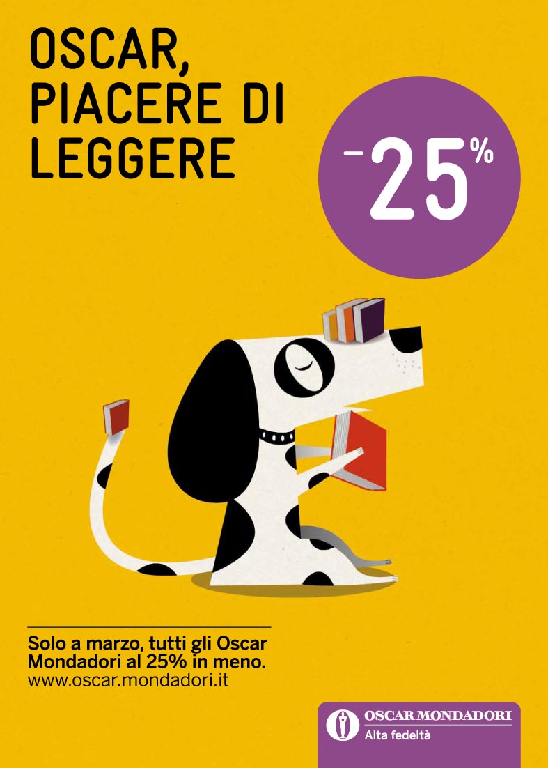 Il progetto di comunicazione coordinata dallo studio Heads è stato strutturato partendo dal concetto della fedeltà che si ha per gli Oscar Mondadori, la rappresentazione di un cane è stata praticamente ovvia. Oscar è diventato la mascotteper la campagna di sconti della celebre collana dei tascabili Mondadori. La macchia sull’occhio di Oscar non è altro che la vecchia O del famoso marchio di Bob Noorda.